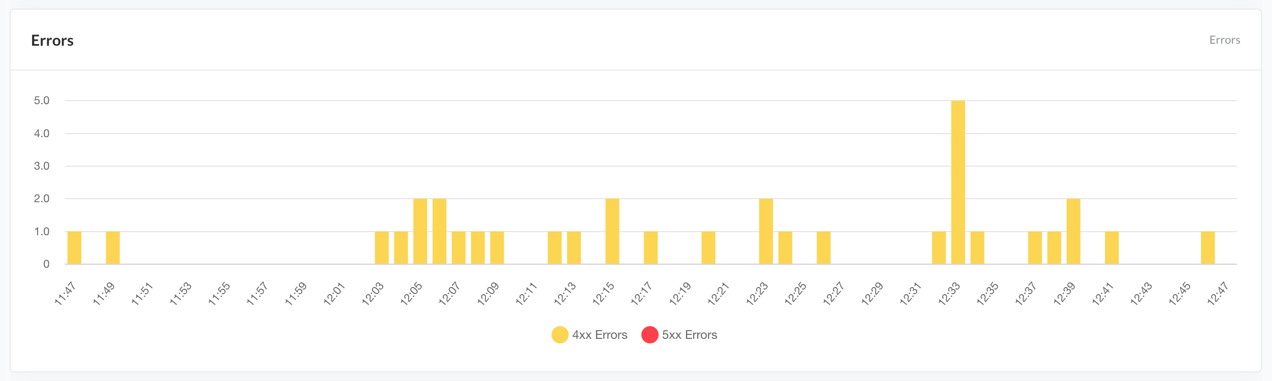 - By grouping issues into 4xx (Client Errors) and 5xx (Server Errors), the graph highlights potential blockers, patterns and stability trends without the need to manually analyze logs.