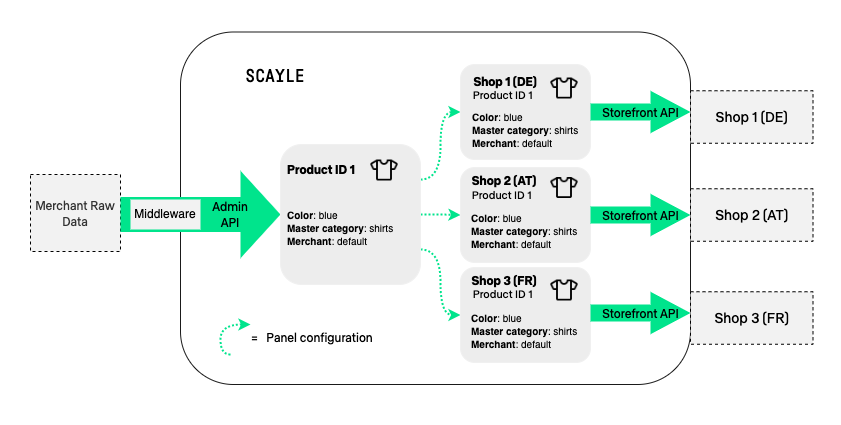 SCAYLE distinguishes between merchant products and the shop products.