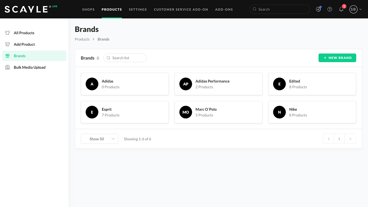 - Go to the brand overview page under Products ➜ Brands.
