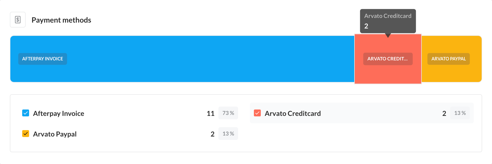 | Payment Methods | ✓ | Payment Methods based on the Confirmed Orders per minute for the given time frame (total and percentage) | |