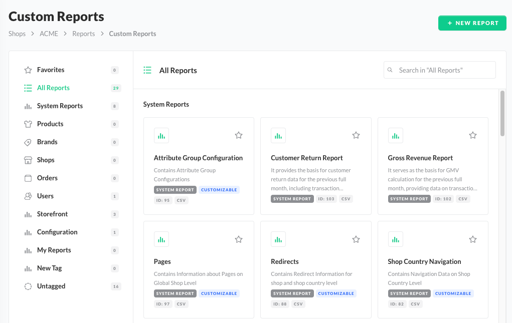 You can mark a report with a star to make it your favorite. Favorites are shown in the corresponding page.