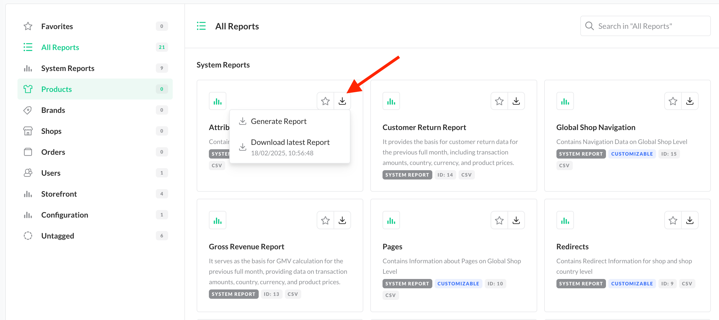 By pressing the download icon you can either regenerate a report or download the latest created report.