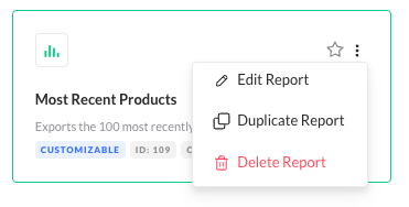 You can find the actions to edit, copy and delete a report after pressing the ⋮-icon.