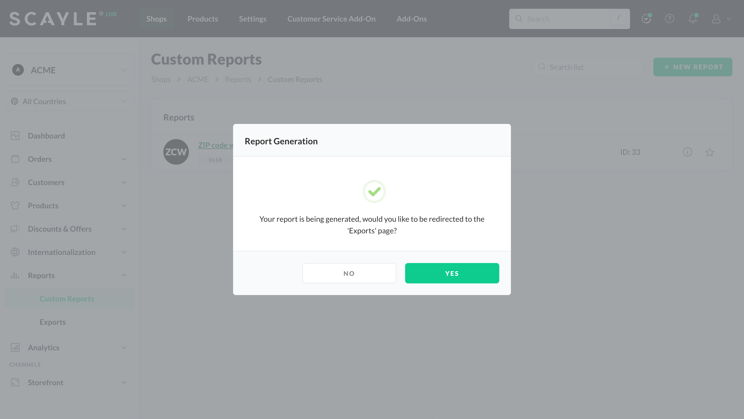 If the report generation is successful, a window appears with a link to the page where the file is available for download.