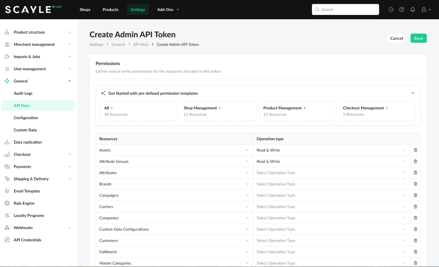 - Additionally you can restrict the Token further based on specific companys, shops and/ or IP Address Filtering. It's highly recommended to use IP Address Filtering in case you've selected a critical resource. You will be notified during the token creating whether or not the API Key you are about to create makes critical resources accessible.