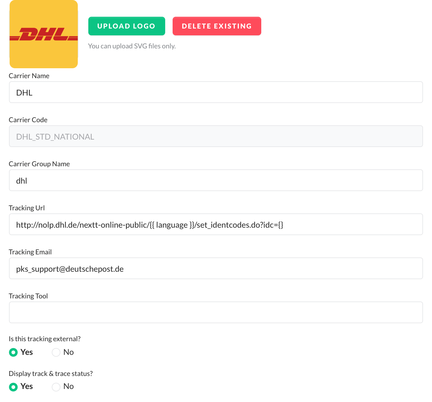 - Upload a carrier logo (optional).