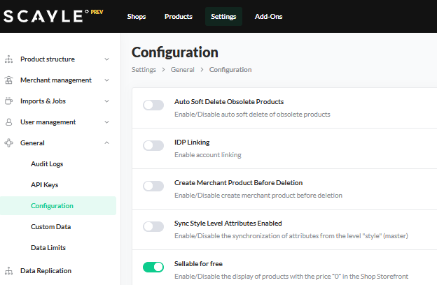 Additionally, please enable the “Sellable for free” configuration under Settings ➜ General ➜ Configuration