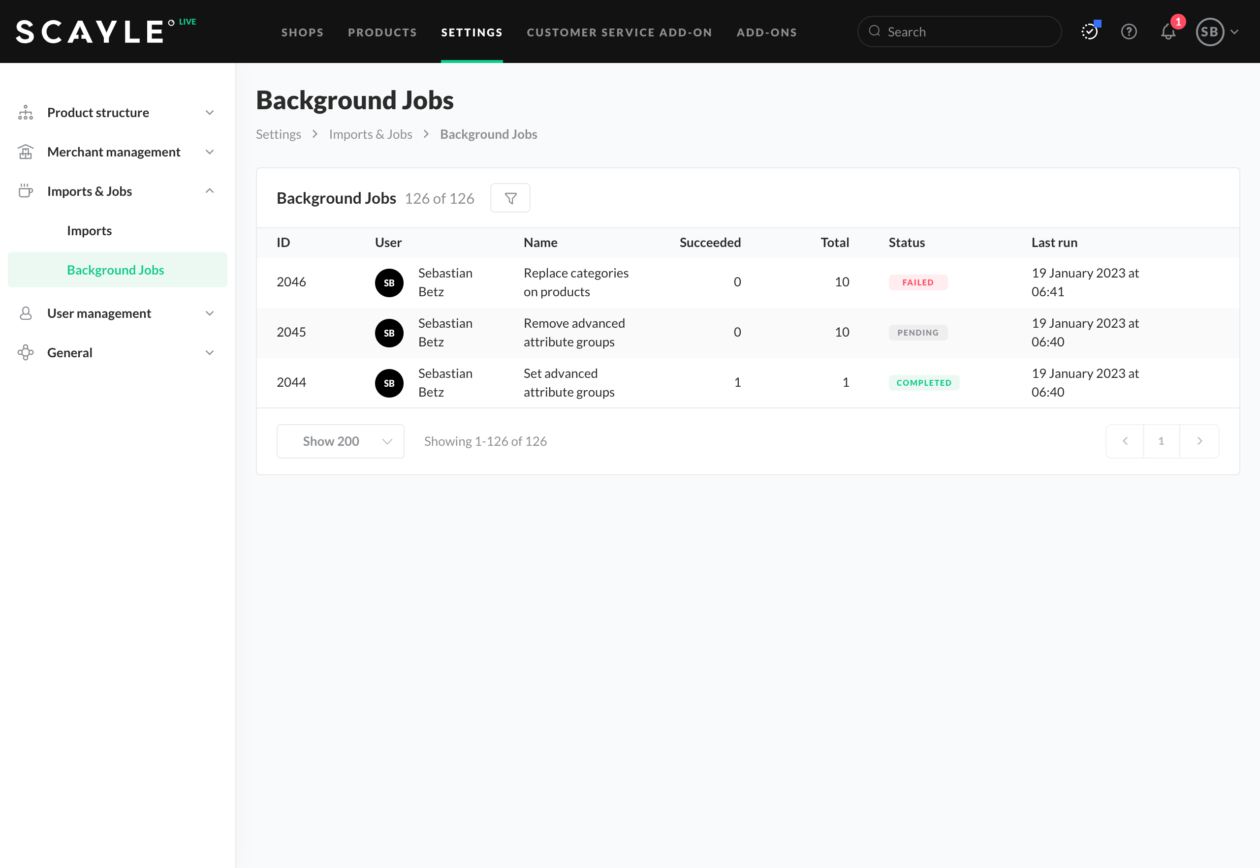 Background jobs with status: failed, pending, or completed
