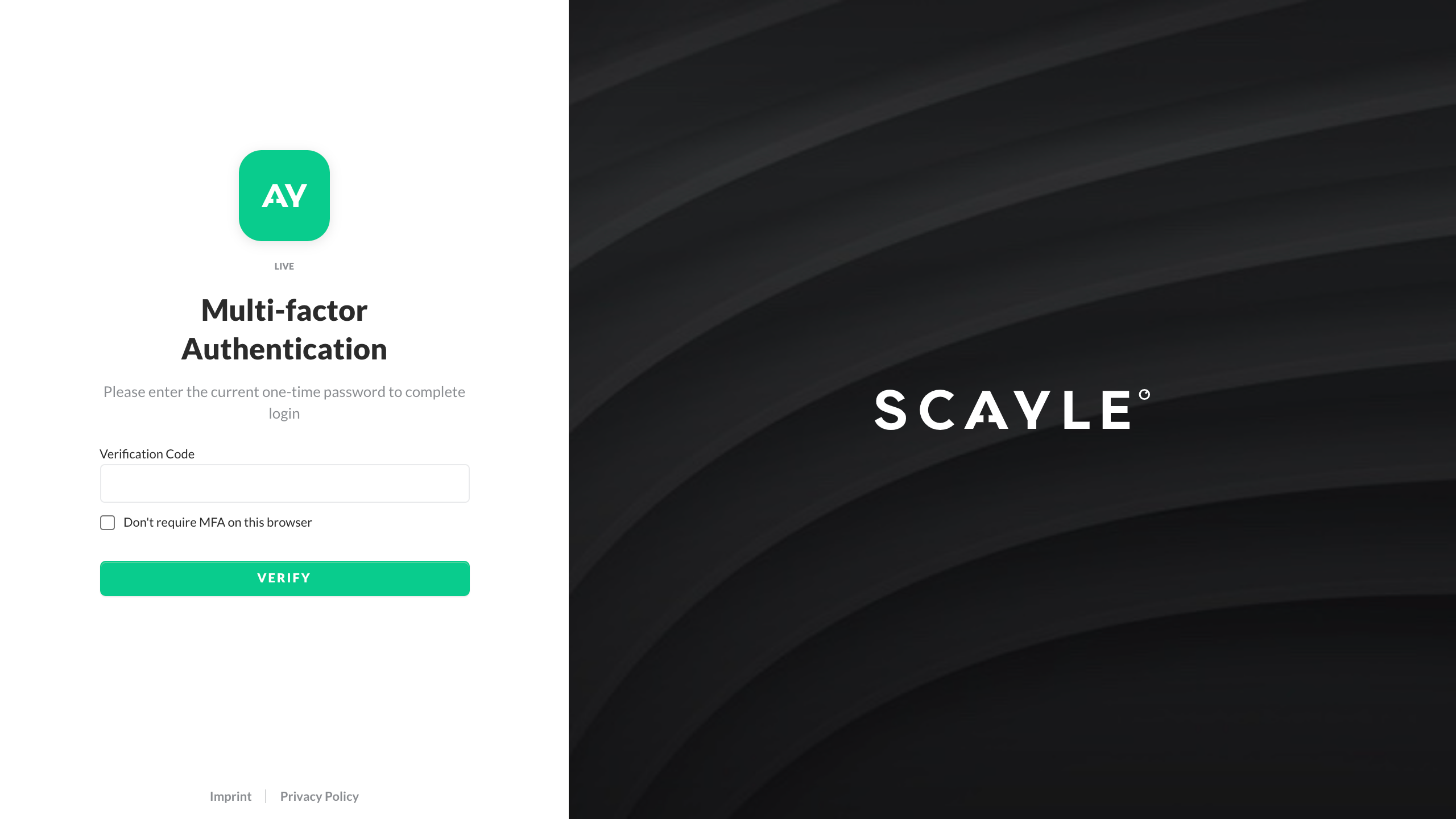 When you sign in to the SCAYLE Panel, you are asked for your login data (email and password). Next, enter the six-digit verification code that you generated with the app. After verifying your entry, you are directed to SCAYLE Panel's dashboard.