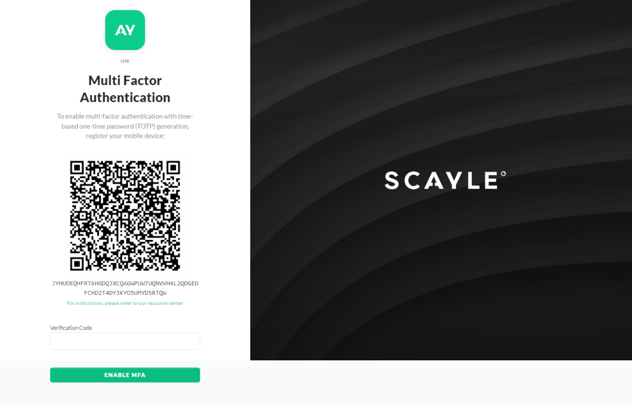 - The app now generates a numeric code. To complete the registration, enter the Verification Code on the SCAYLE site.
