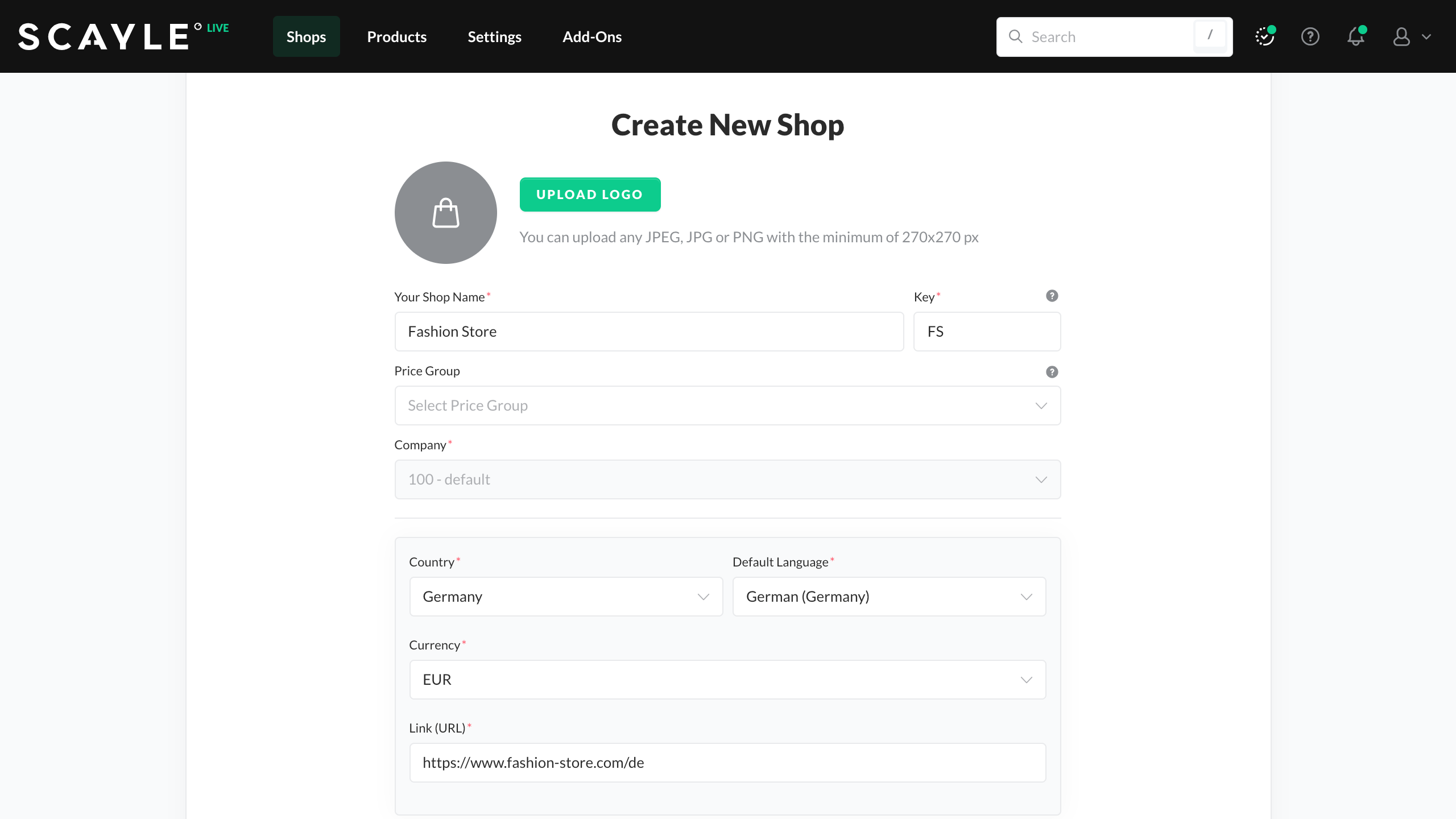 A shop in SCAYLE is a virtual entity in the SCAYLE universe that translates to an online store in the front end. You can structure different shop countries within a shop. Shops are differentiated by their purpose, for example, a B2B shop, an outlet, or a brand.