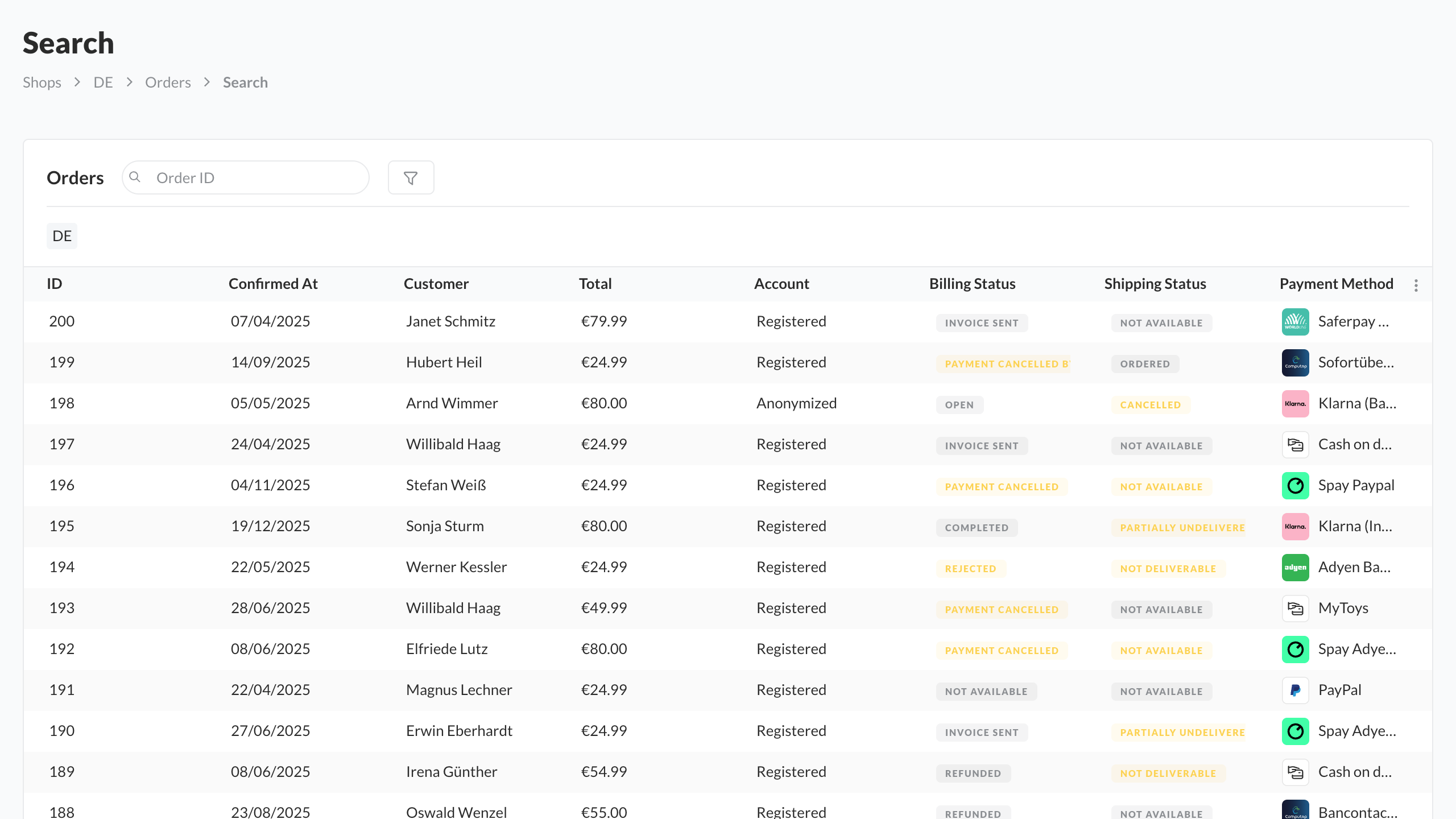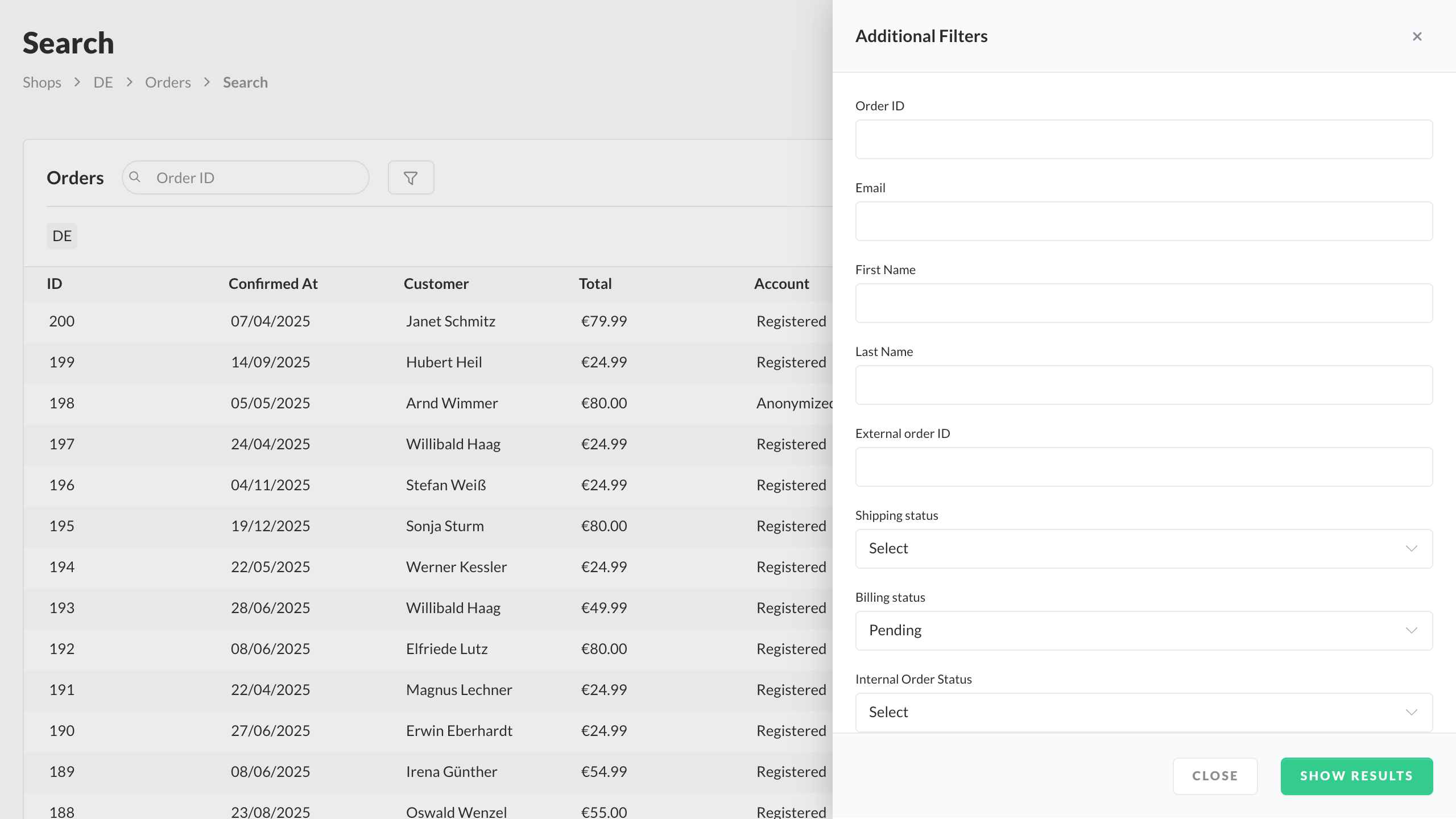 - Go to Shops ➜ Orders