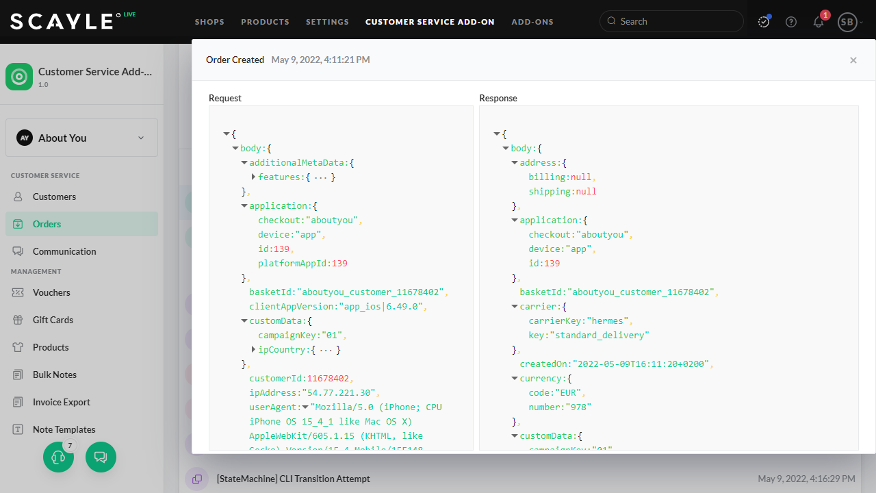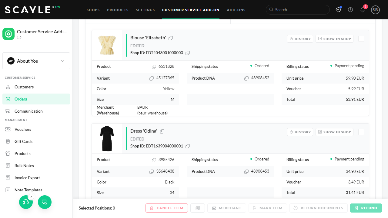 The SCAYLE Panel allows read-only access to customer-related information. Changes to customer data or orders can only be made if the CUSTOMER CARE product is also purchased.