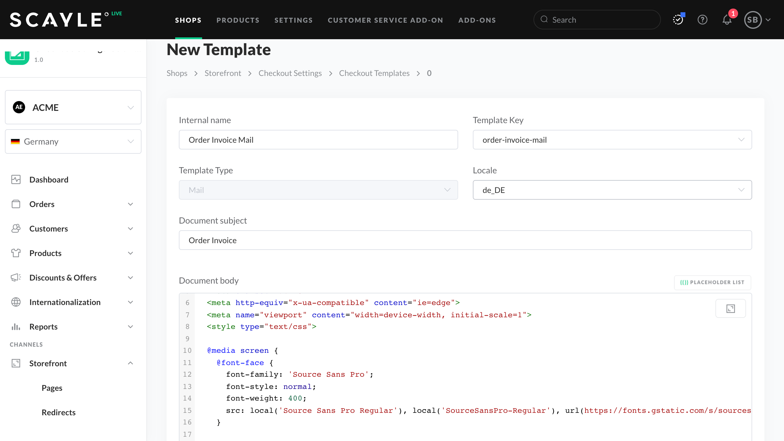 - Template key: dropdown item is automatically selected for the corresponding Checkout action (order invoice, order confirmation, password reset, etc.)