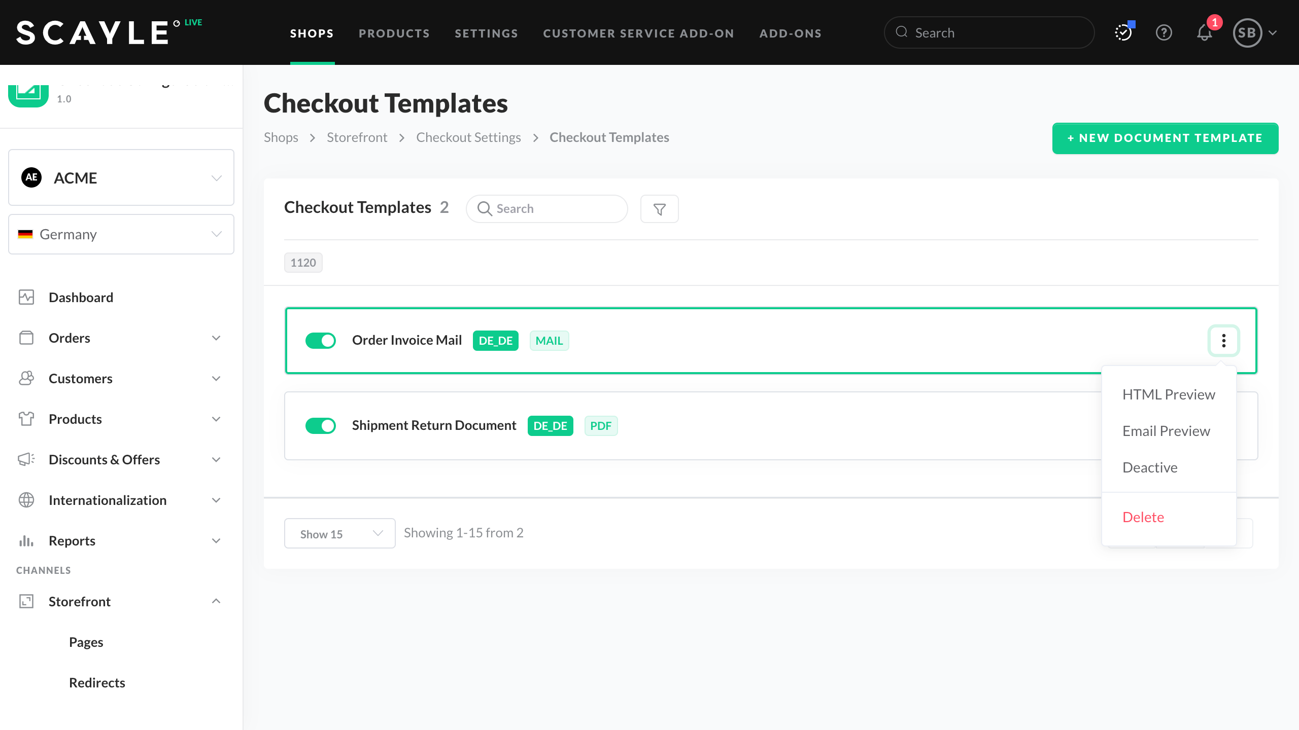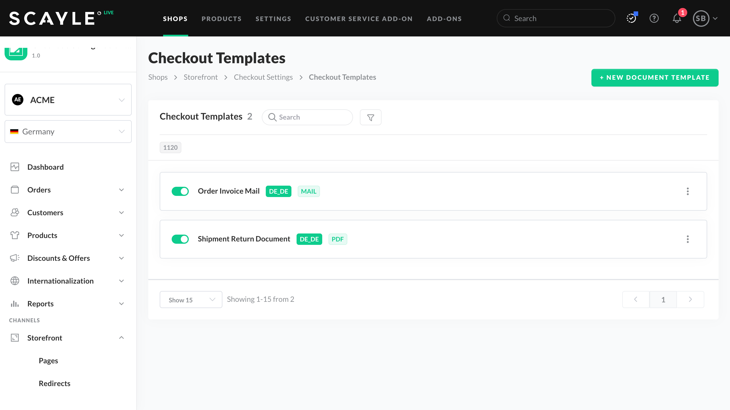 It is possible to set all templates to inactive. However, if no template is active, Checkout uses a fallback template. This means, for example, that an email will always be sent to a customer even if all email templates are deactivated in the SCAYLE Panel.