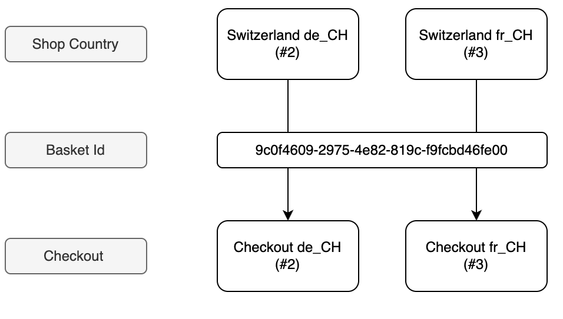 If a customer now places a product in the basket within the German Swiss store and then changes the language to French, he still wants to have the product in the basket. As this can lead to confusion, it makes sense to provide a shared basket for booth Swiss shops.