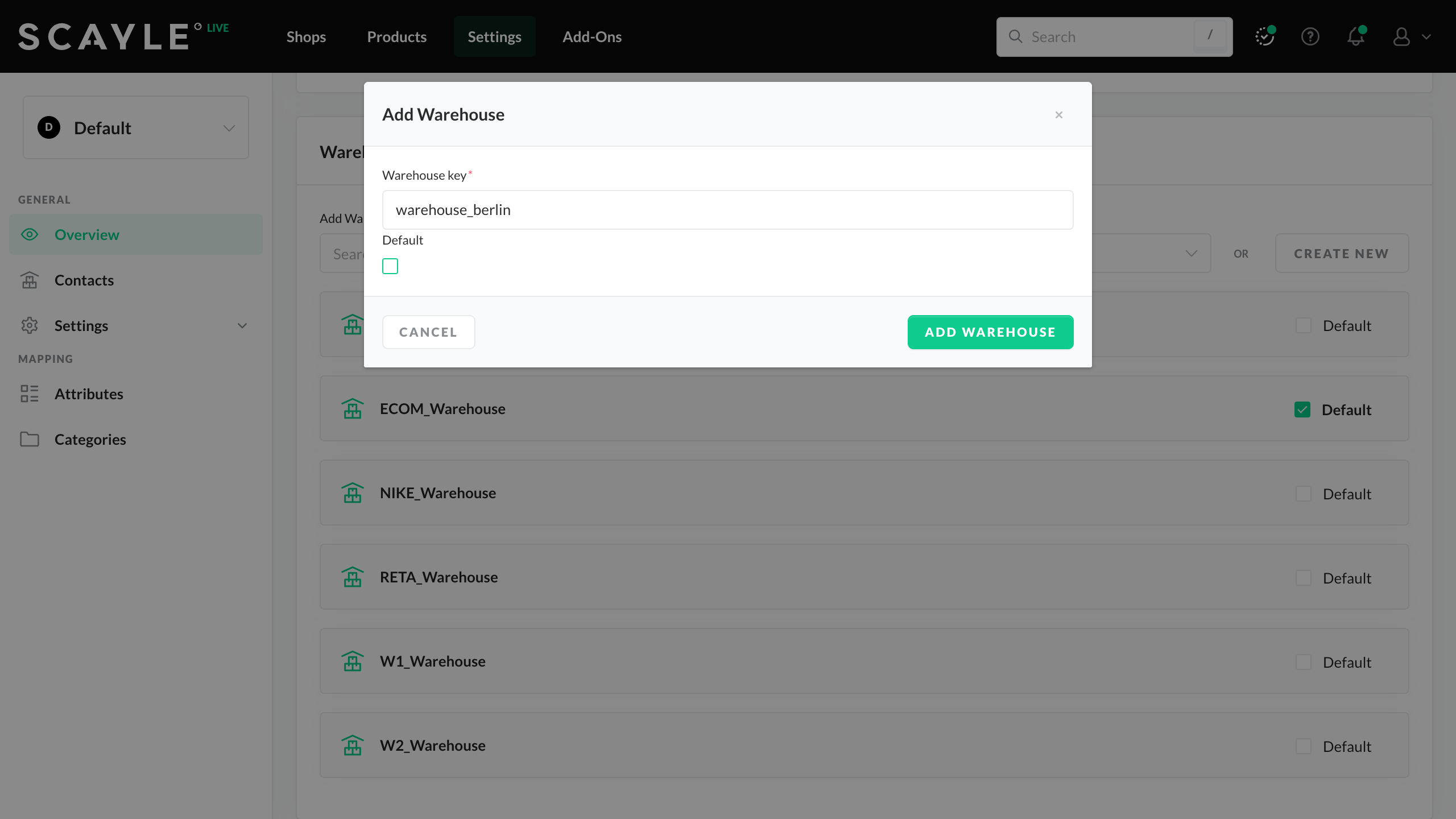However, in most cases, you will only configure warehouses once without further changes, so we recommend using the SCAYLE Panel.