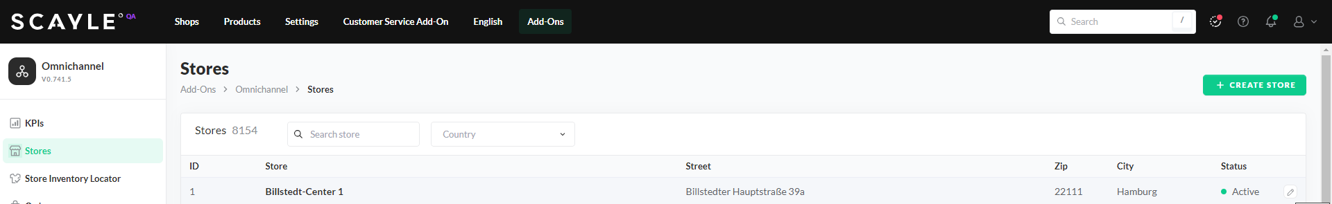 Store List Page in the SCAYLE Panel