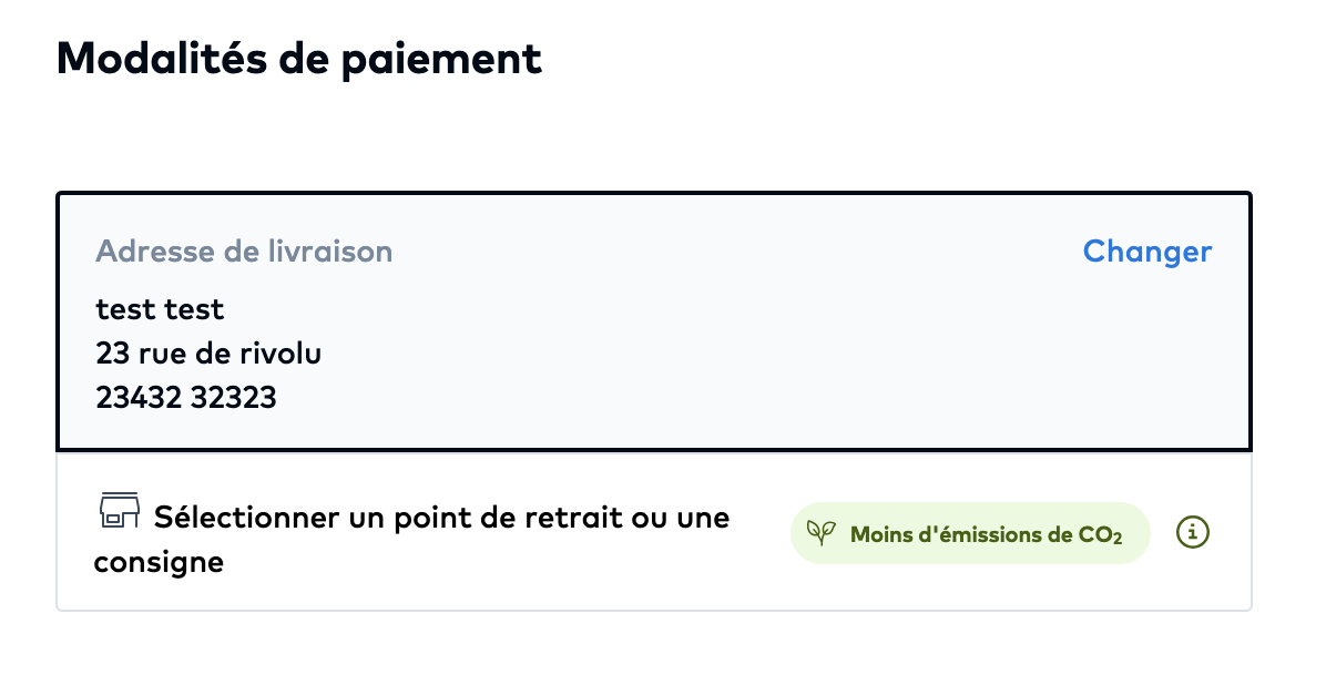 option. During the Payment step of the Checkout flow, a Collection Point can be suggested if the customer selects Home Delivery.