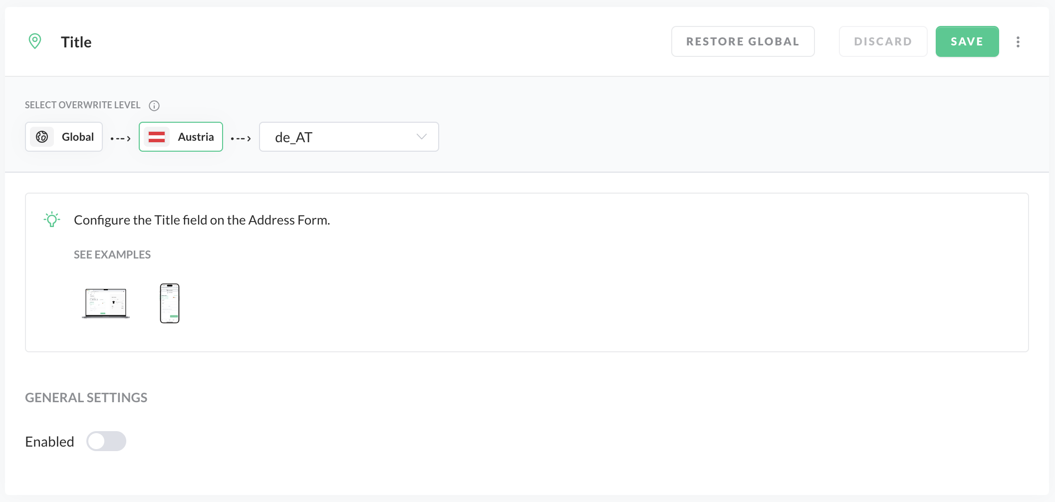 Navigate to Settings ➜ Checkout ➜ Configurations ➜ Address Form ➜ Title