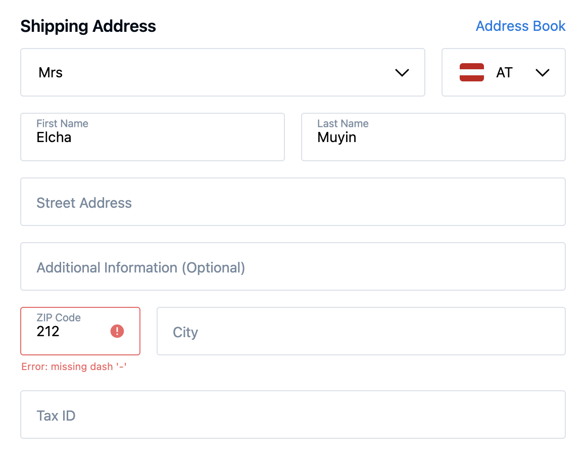 Address fields are thoughtfully designed with various validation rules to help ensure that users submit accurate and correct information.