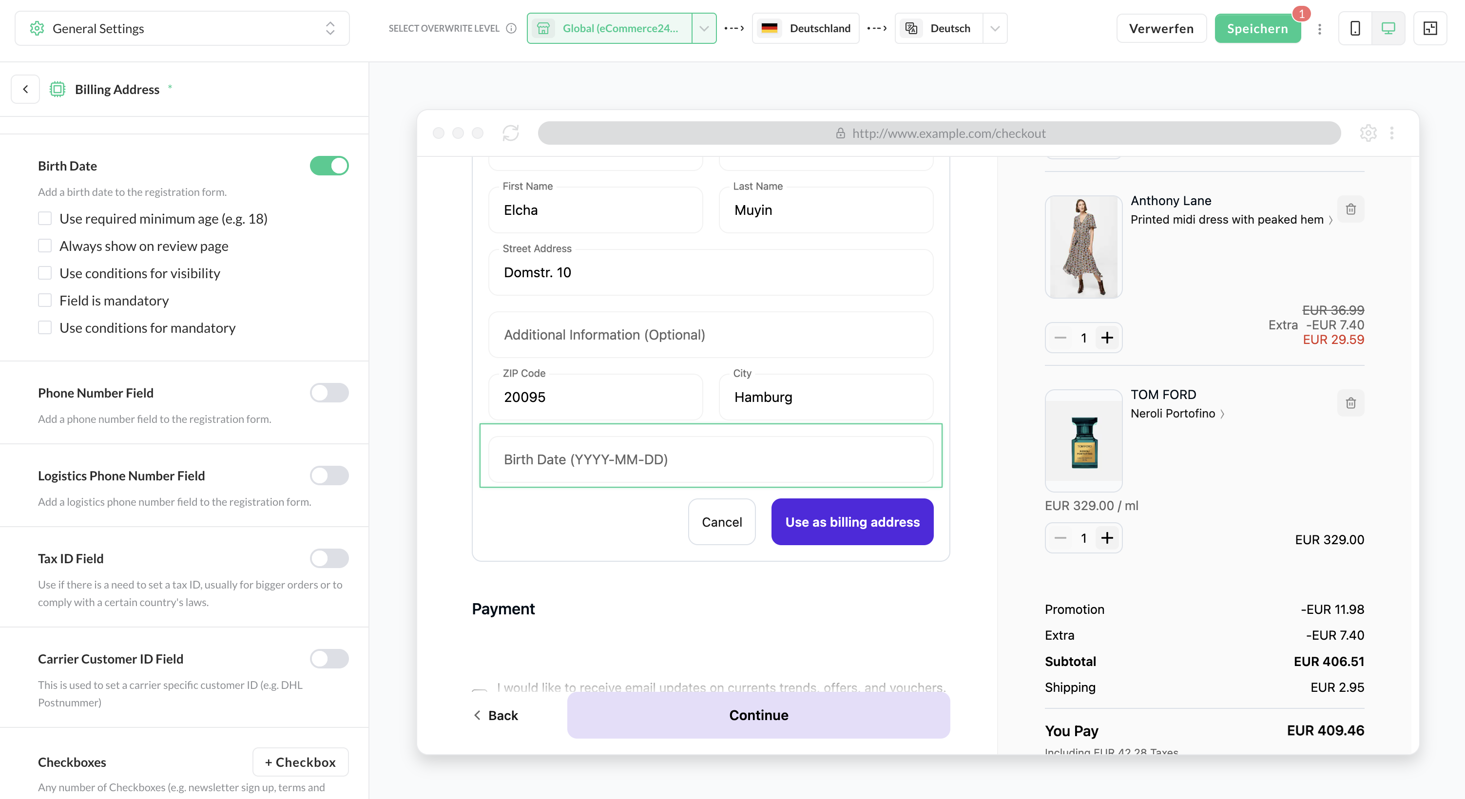 ensure data accuracy. Additionally, the user interface can be tailored to create a seamless and personalized Checkout Experience. This flexibility accommodates unique country-specific requirements while improving overall customer conversion.
