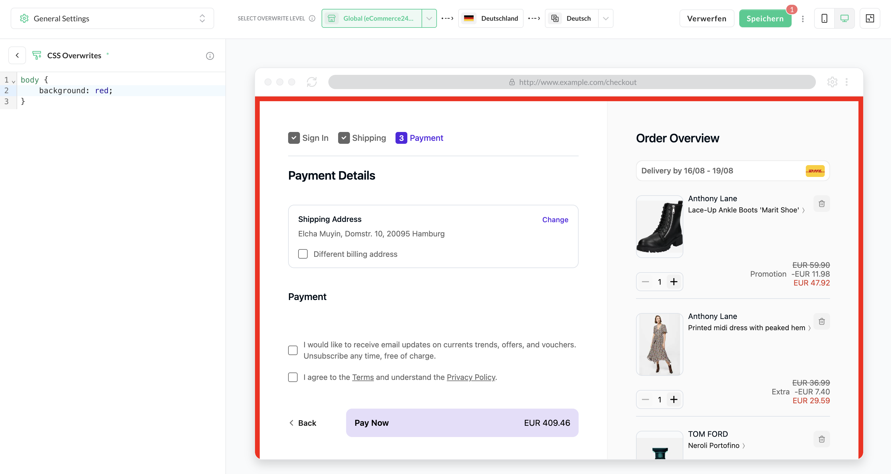 The SCAYLE Checkout comes packed with powerful customization options to make your checkout integrate seamlessly within your shop's design: