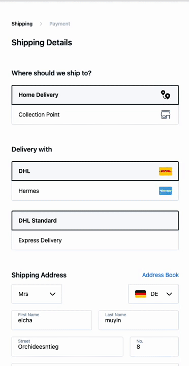 The following screen recordings show all of the places where the checkout is rendering dynamic area slots. Note that the slots are rendered, only when the option is selected.