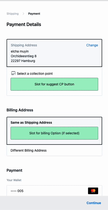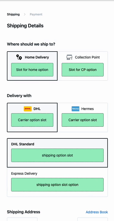 Multiple slots are now available in different areas of the checkout application. Each of them have a unique name.