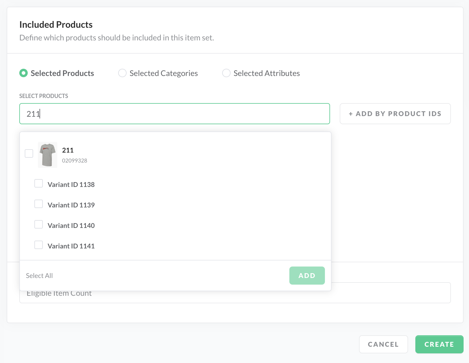 Hint: Add Products via specific products, Categories or attributes. In order to figure out your IDs navigate to Shops ➜ Customers ➜ Search.