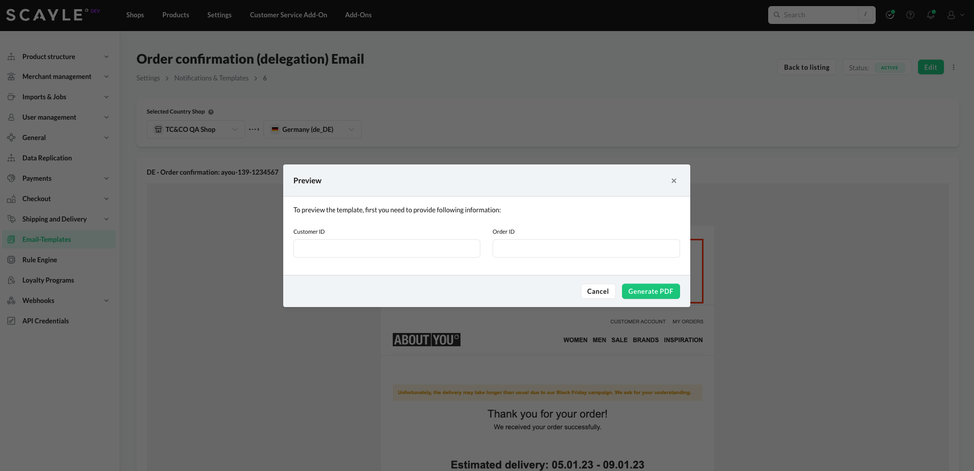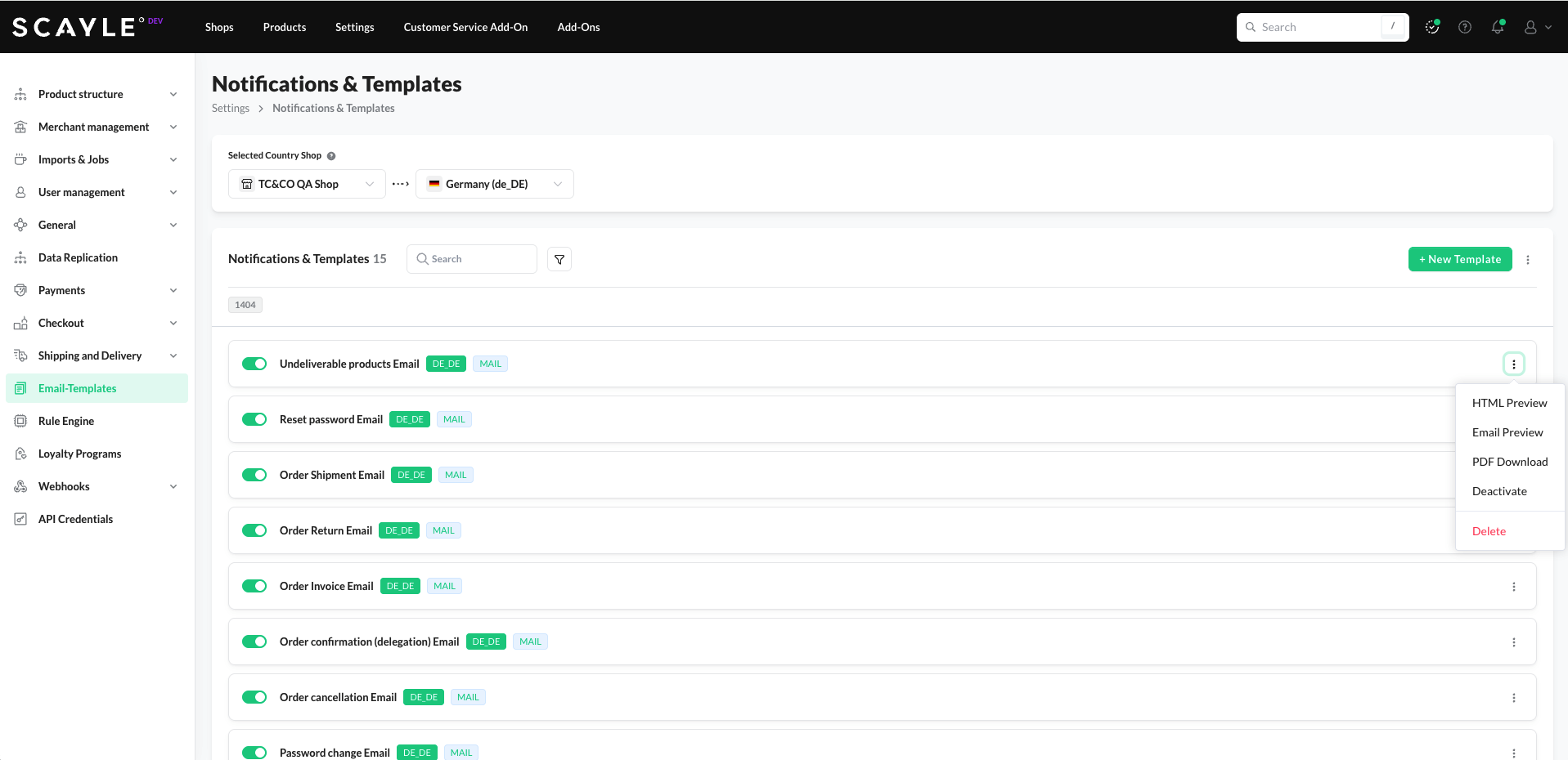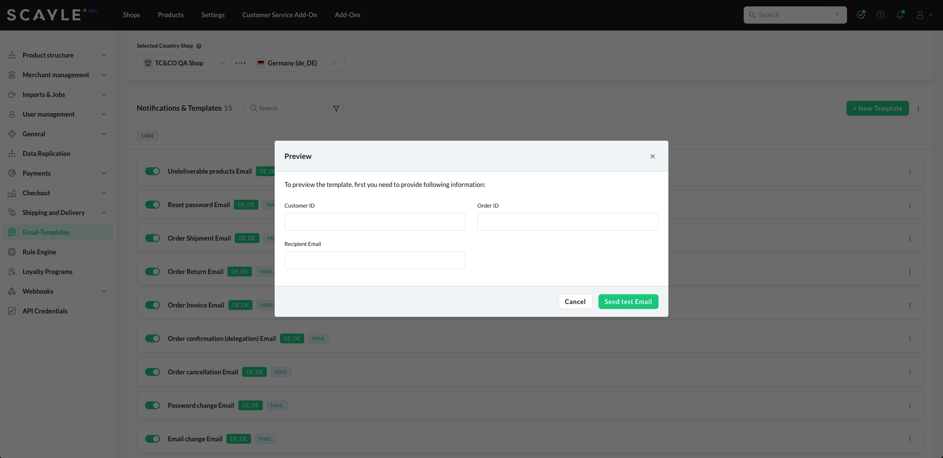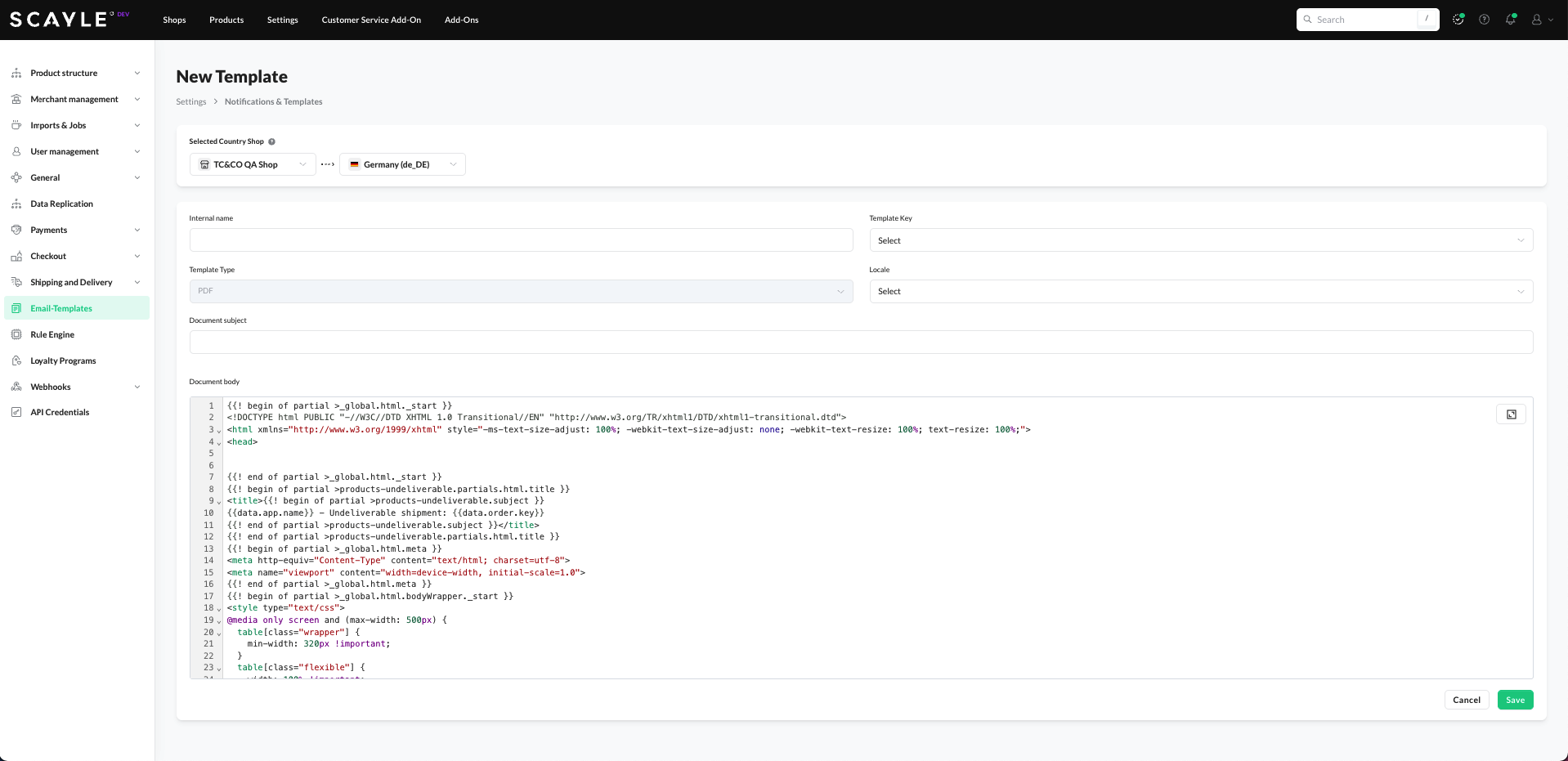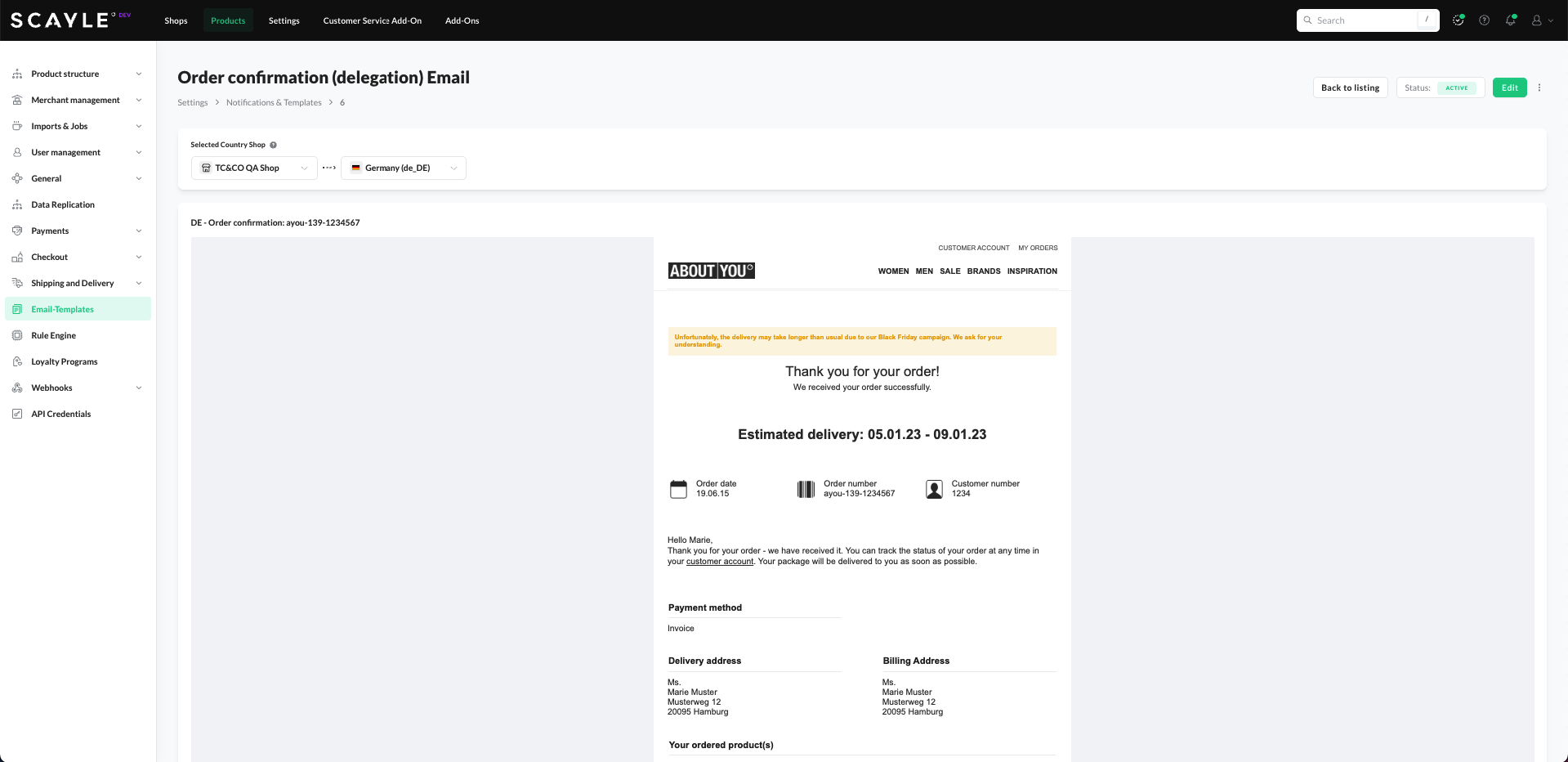 The SCAYLE Email Template Editor empowers your team to manage the transactional emails sent to your customers - from order confirmations to shipping updates and returns. You can create, edit, test, and manage email templates directly within your shop environment.
