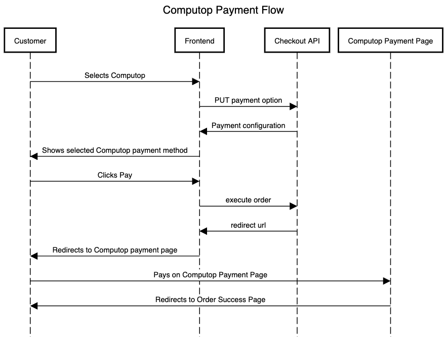 This section covers the client side integration of Computop payments. The flow can be visualized as: