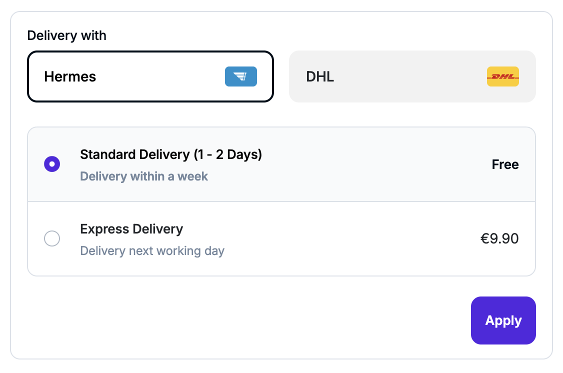 To streamline the process, the best-fitting shipping option will be preselected automatically. This is determined by: