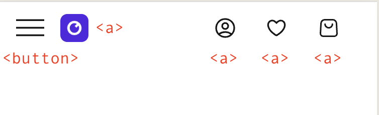 <a>tags navigate users to new pages (e.g., account, wishlist, and basket icons in the mobile navigation).<button>tags trigger actions (e.g., hamburger menu).
