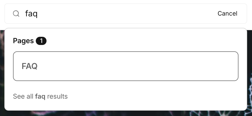 - Navigation Item – e.g., typing "FAQ" suggests the FAQ page.