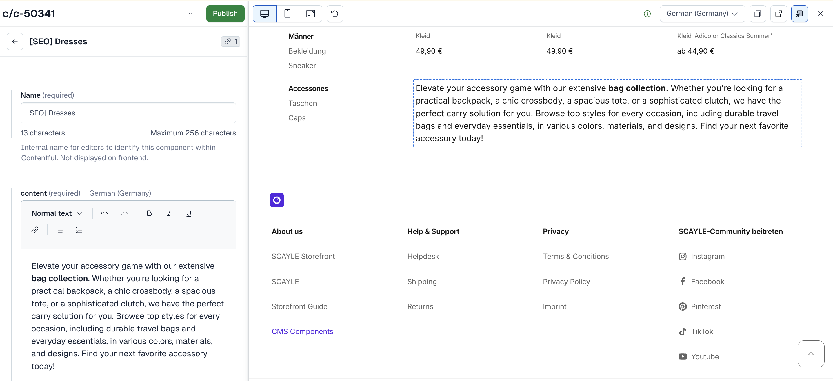 Contentful is a highly scalable, API-first headless CMS platform designed for large volumes of complex, structured content. The SCAYLE Storefront Application includes a comprehensive, production-ready integration that leverages Contentful's powerful API and content modeling capabilities.