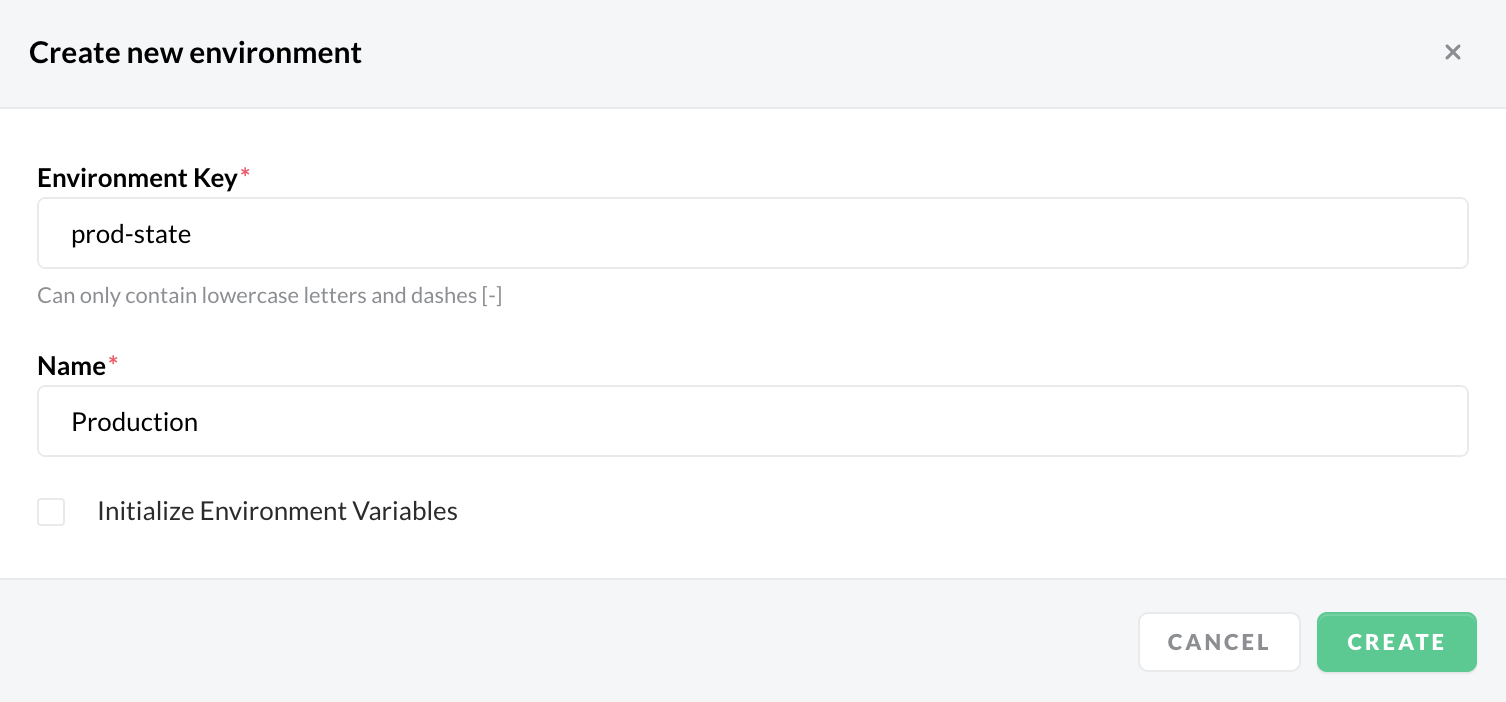 - Optionally, checkmark Initialize Environment Variables in case you want your environment to be prepopulated with the required environment variables to run your Storefront Application out-of-the-box.