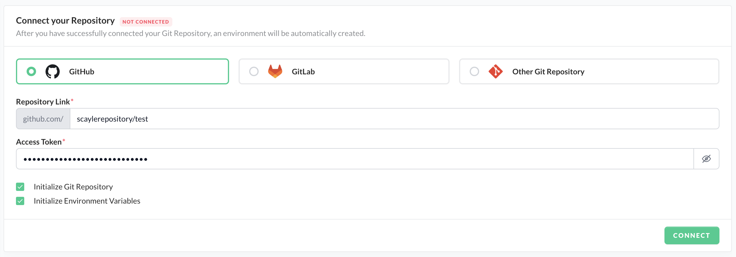 scaylerepository/test- GitHub & GiLab options also include predefined domains.