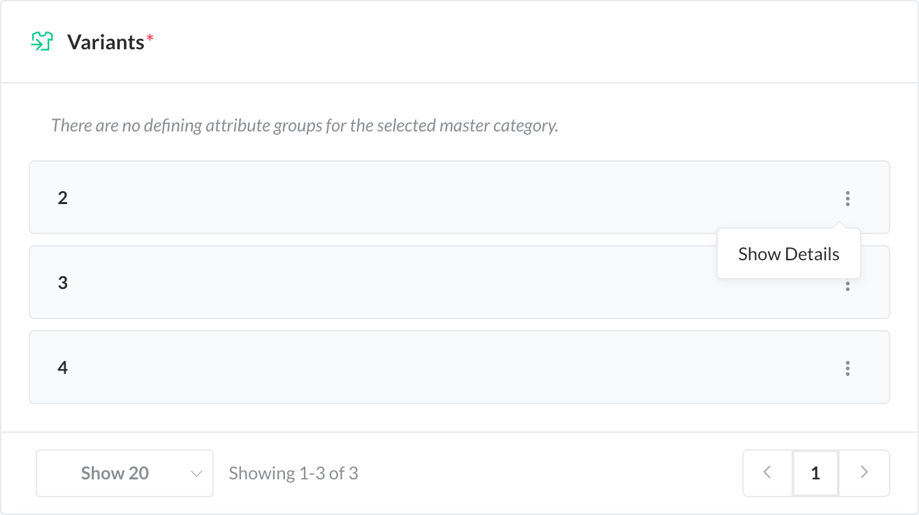 - If no product variant has a defining attribute that matches the one sent from the merchant, a new variant is created for it. This is indicated by the blue lettering New Variant instead of the EAN.