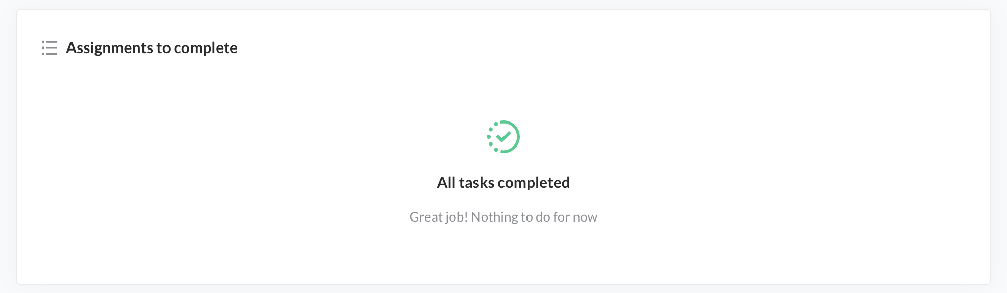 The assignments to complete section shows Data Replications to approve, Imports to review and newly available Checkout Keys to translate by the user.