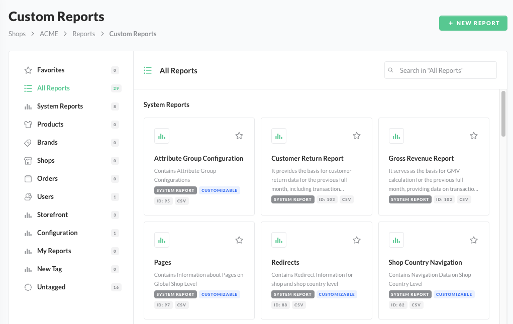 You can mark a report with a star to make it your favorite. Favorites are shown in the corresponding page.