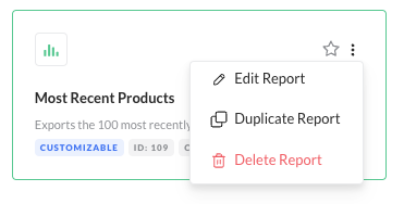 You can find the actions to edit, copy and delete a report after pressing the ⋮-icon.