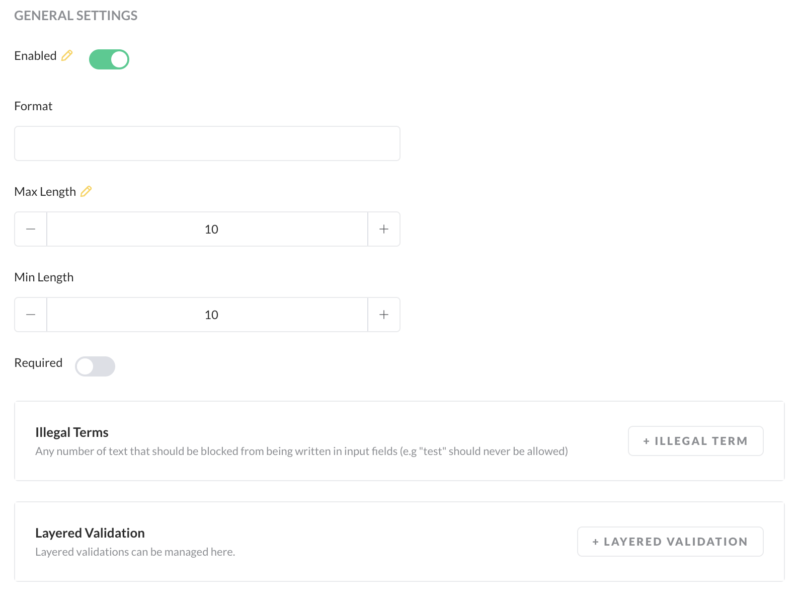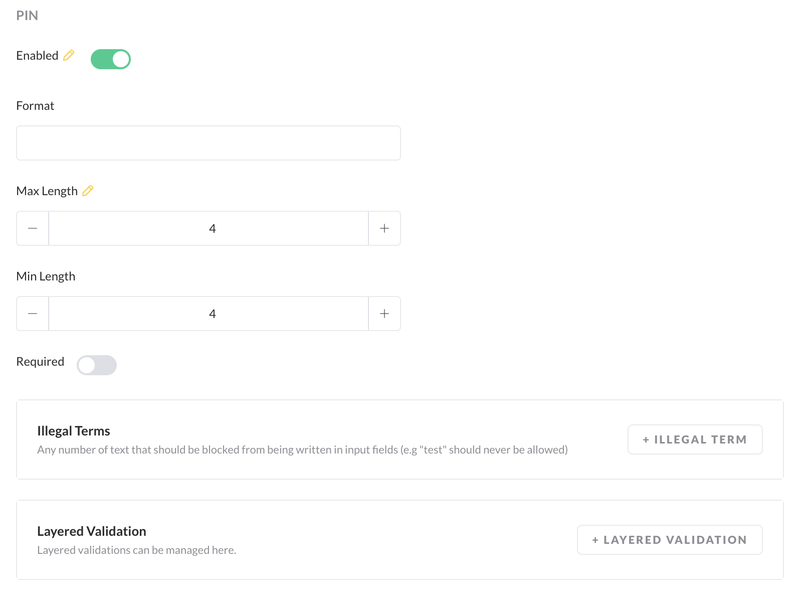 - Format - allows to define a regex for the frontend validation of gift card numbers,