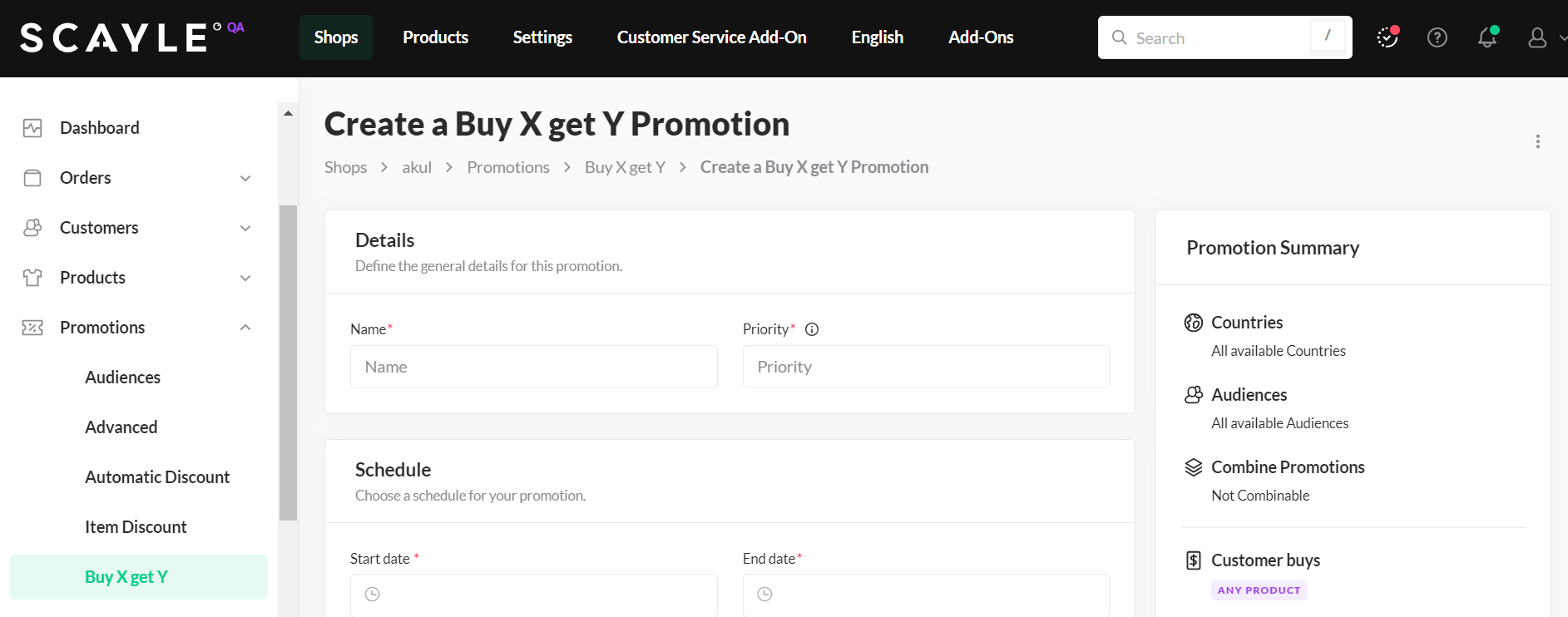 - Enter a number for Priority. This determines the priority of the promotion in the case that there are multiple promotions active at the same time.