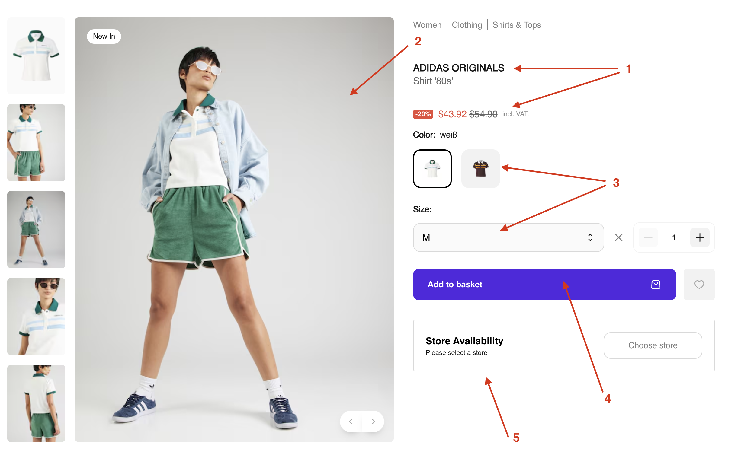 - Product Images: Displays multiple images, including zoom and gallery views for enhanced product visualization.