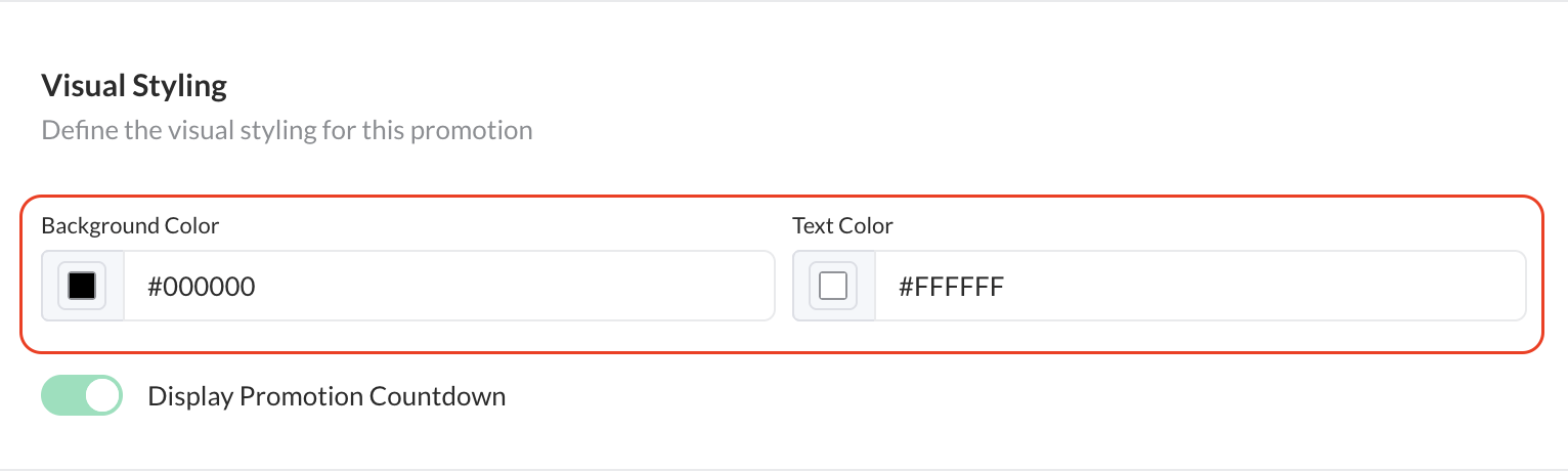 To enhance the default UI of deal components, you can use the customization section of the deal setup. All UI data is available as direct inputs in the Panel for both promotions and campaigns. To access these inputs, enable the corresponding toggle in the "Promotion Design" or "Campaign Design" section (on the main promotion/campaign setup page; for campaigns, specifically under Campaign → Settings). The available inputs are almost identical across both deal types.