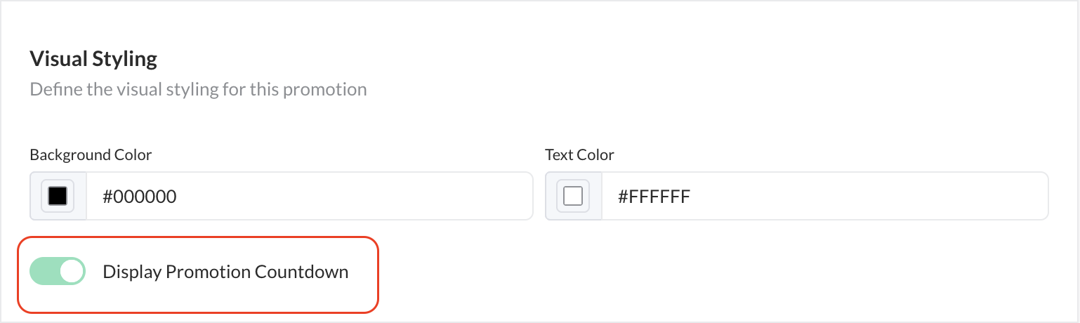 - SCAYLE Panel Field: "Display Countdown" toggle (under Promotion/Campaign Design).