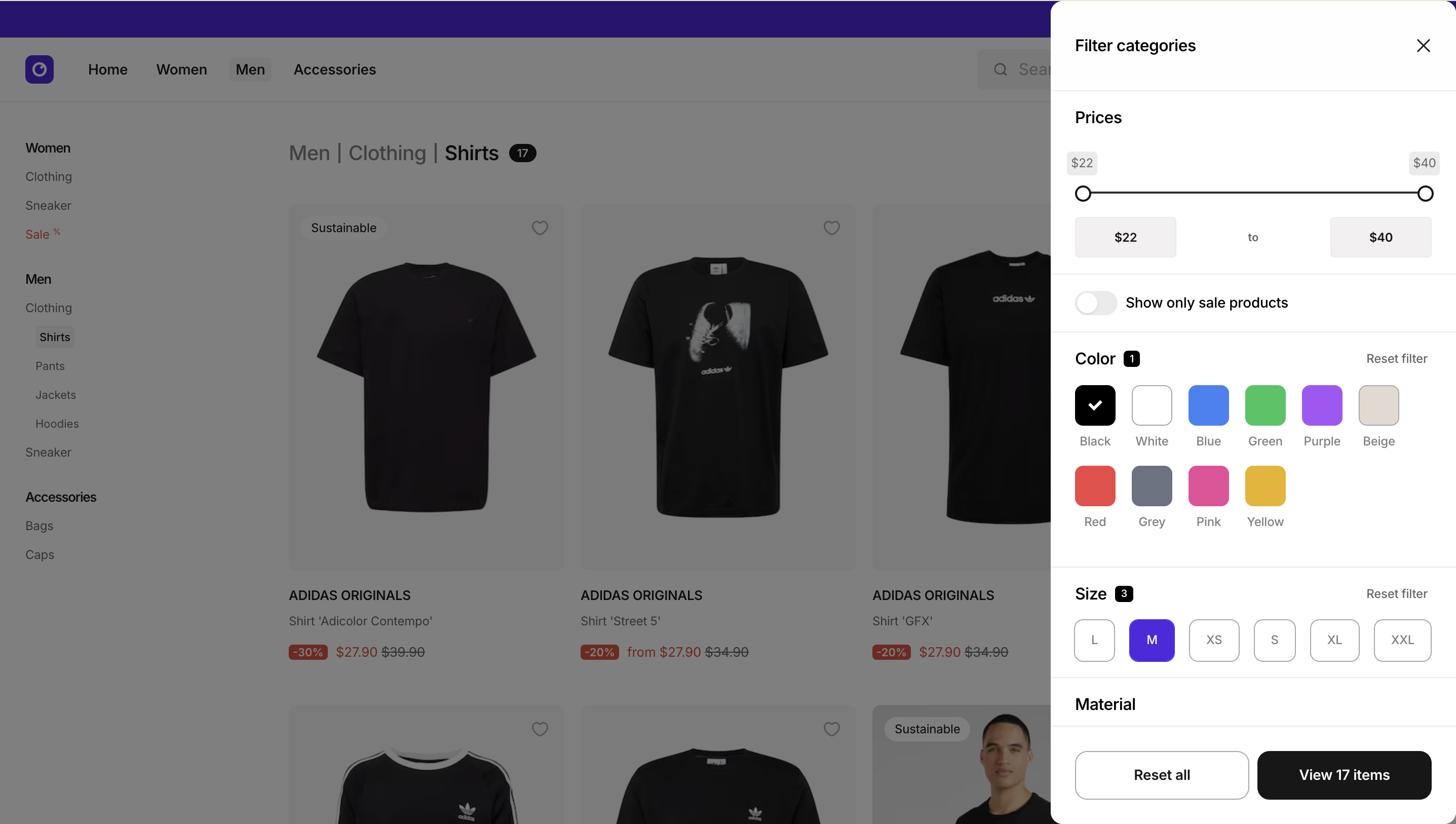 Shirtcategory page with the filtersColor: BlackandSize: Mautomatically applied.\.png)