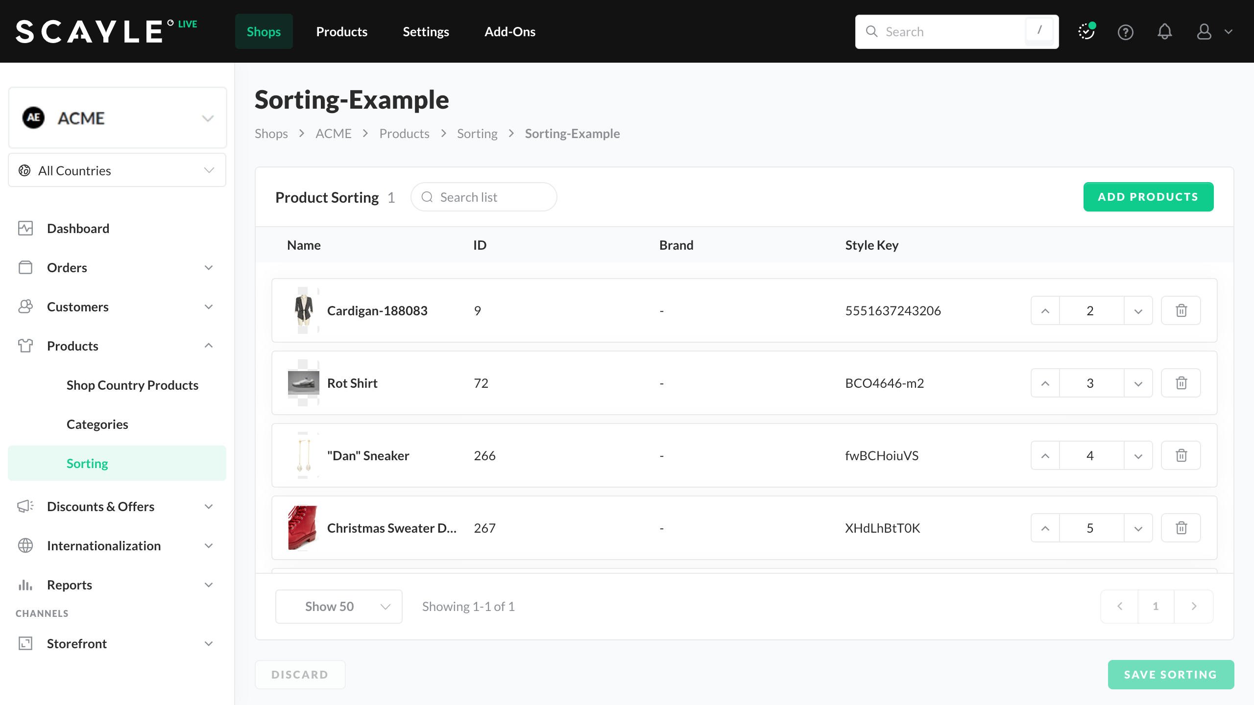 SCAYLE offers three different sorting mechanisms to allow you to sort the products according to your needs: